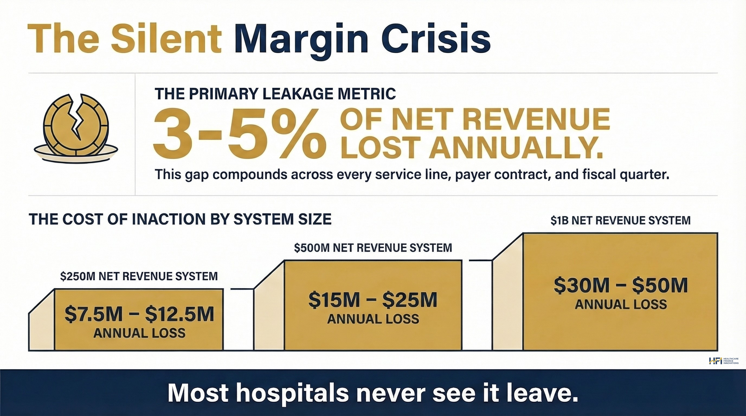Your health system is operating on a 2-3% margin. Somewhere in your revenue cycle, you are quietly losing another 3-5% of net revenue every year. That gap is not theoretical. It compounds across every service line, every payer contract, and every quarter you delay intervention.
