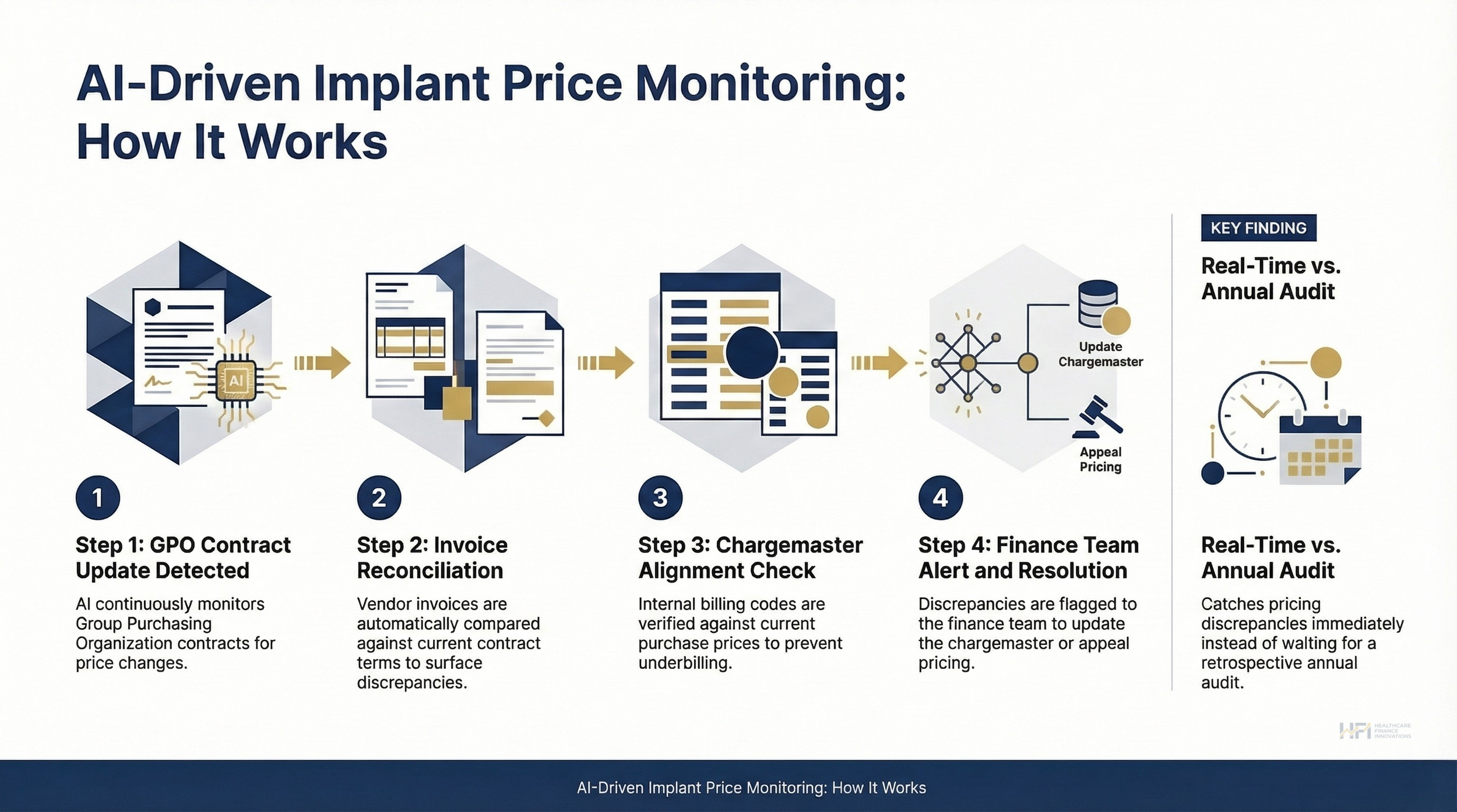Most AI revenue cycle conversations focus on claims, coding, and denials. There is a less-discussed application that has significant upside for service-line-heavy health systems: GPO contract and implant invoice monitoring.